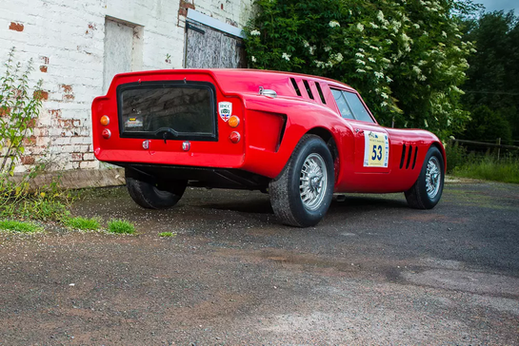 Rivoltas combined Golden-age Italian design with reliable Detroit-sourced power, much like DeTomaso did with the Mangusta and Pantera, but in a more luxurious, Gran Turismo style—hence the front engine placement and relatively luxurious interior appointments of standard cars. This particular example has a race-stripped interior with a serious-looking matte black metal dash, toggle switches, cable door pulls, quilted transmission tunnel, and some very cool gauges with interesting placement—we’re sure it’s a noisy, cramped, hot, and not exceptionally comfortable or safe place to be, all of which does nothing to diminish our enthusiasm. This particular car is motivated by 5.4 liters of Chevrolet small block, likely producing about 450 HP.1965 Ogle Triplex Scimitar GTS