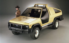 With some irony, it was based on the 4×4 chassis of a 1977 Bronco and powered by a 5.0-liter V8, but what they put on top of it was anything but old-school. Its edgy, mustard-gold bodywork sported a wedge-profile hood, raked-back windshield, roll bar, louvered side rails, a rooftop airfoil over off-road lights, and foam bumpers with an integrated winch.