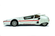 The Challenge came close to being a mass-production car by Sbarro’s to date. This uncompromising wedge-shaped car, first seen in 1985, looked like a slice of Gruyere cheese and was claimed to have a Cd figure of just 0.25. The doors folded forward for entry. Initially, die Challenge was offered with a twin-turbo Mercedes V-eight engine, but later cars had Porsche engines mounted in the rear. All were capable of storming speeds — up to 180mph (290km/h) was claimed.